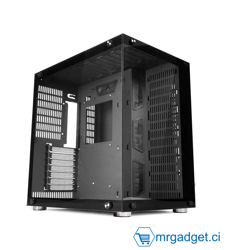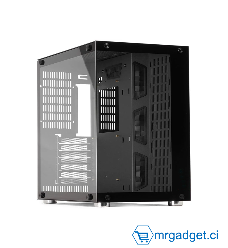 Boitier Gaming WJCOOLMAN Black35 Noir - Vue Panoramique Verre Trempé 270° sans Montant - Moyen Tour ATX / M-ATX - Support Watercooling 360mm - Design Aquarium Premium pour Configuration RGB - Châssis Noir Robuste & Élégant - Noir