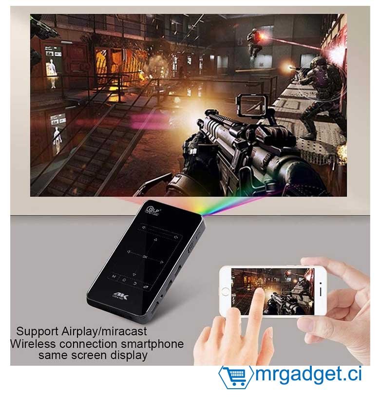 - Écran tactile intelligent, toucher précis, sensible et non bloqué. Utilisation de la technologie d'affichage DLP, décodage 4K HD