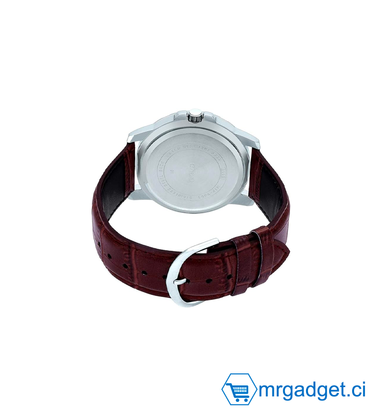 CASIO #CH23 MTP-VD01L-1BVUDF Montre Homme en Acier Inoxydable Cadran Noir Affichage Analogique - Bracelet en Cuir marron – Affichage analogique – Résistant à l’eau