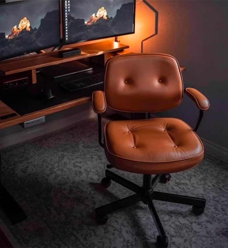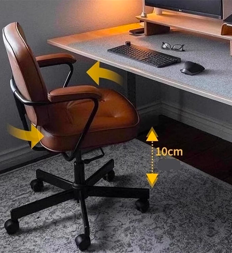 Chaise bureau #CB01 Chaise à domicile avec support confortable en cuir synthétique pour chambre à coucher, levage et rotation pour ordinateur (Marron)