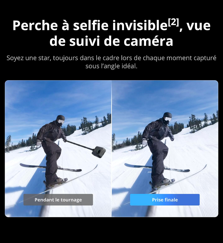 - Action immersive ultra-large - Capturez chaque frisson avec des vidéos 4K/120 ips super fluides et un champ de vision de 170°. Avec votre caméra d’action 360, revivez des mouvements rapides et des scènes épiques avec des détails.