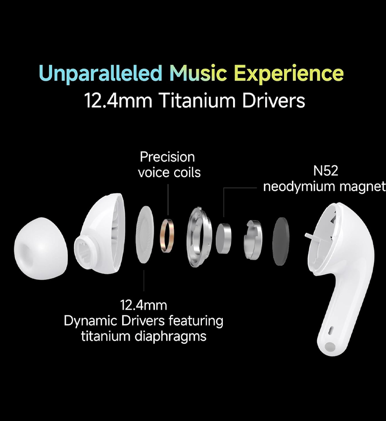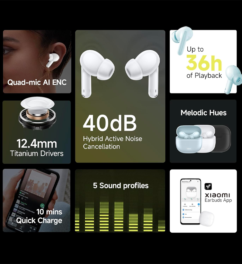 Écouteurs intra-auriculaires Bluetooth TWS Redmi Buds 5C, réduction hybride du bruit jusqu'à 40 dB, quadruple micro, égaliseur personnalisé, 10 minutes de charge pour 2 heures d'autonomie, jusqu'à 36 heures de lecture, TWS pour jeux vidéo | Bass - Blanc
