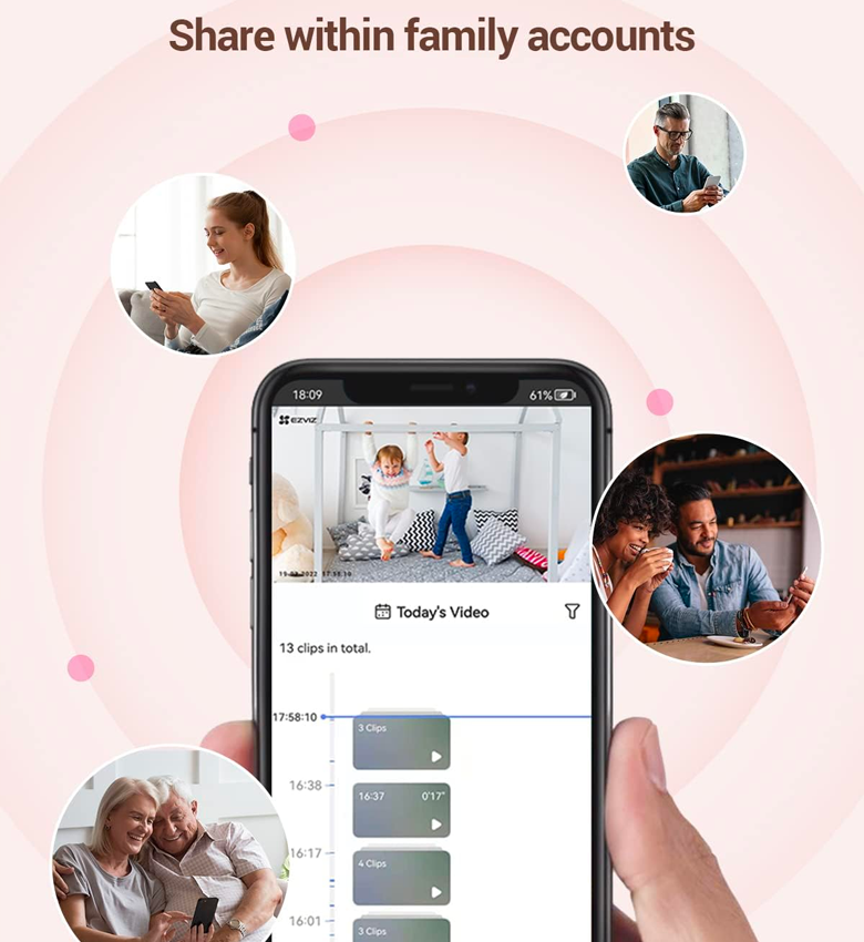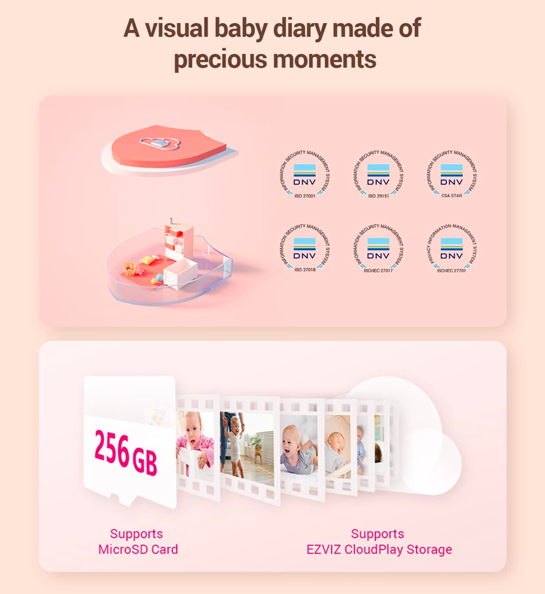 EZVIZ BM1 Babyphone Camera sur Batterie 2000mAh, Camera Bebe avec Détection de Pleurs/Movement de Bébé, Lecture Automatique de Musique Apaisante, Vision Nocturne sans Lumière Rouge Visible, Rose