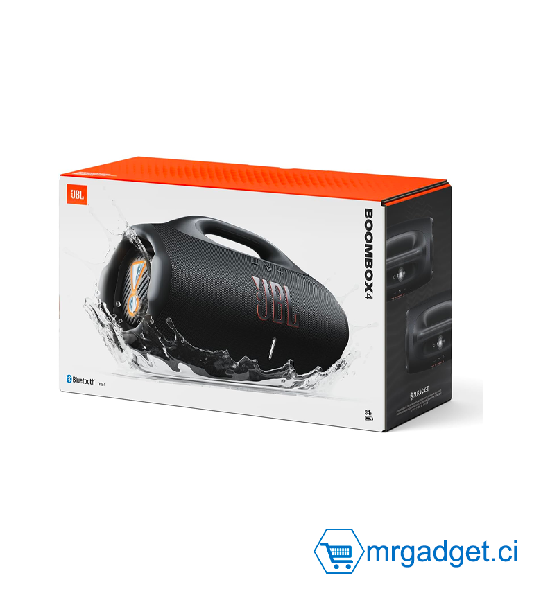 JBL Boombox 4, Enceinte Bluetooth Portable, Son JBL Pro, AI Sound Boost, étanchéité et résistance à la poussière IP68, jusqu'à 34 h d’autonomie, Connexion Multi-Enceintes Auracast, Noir