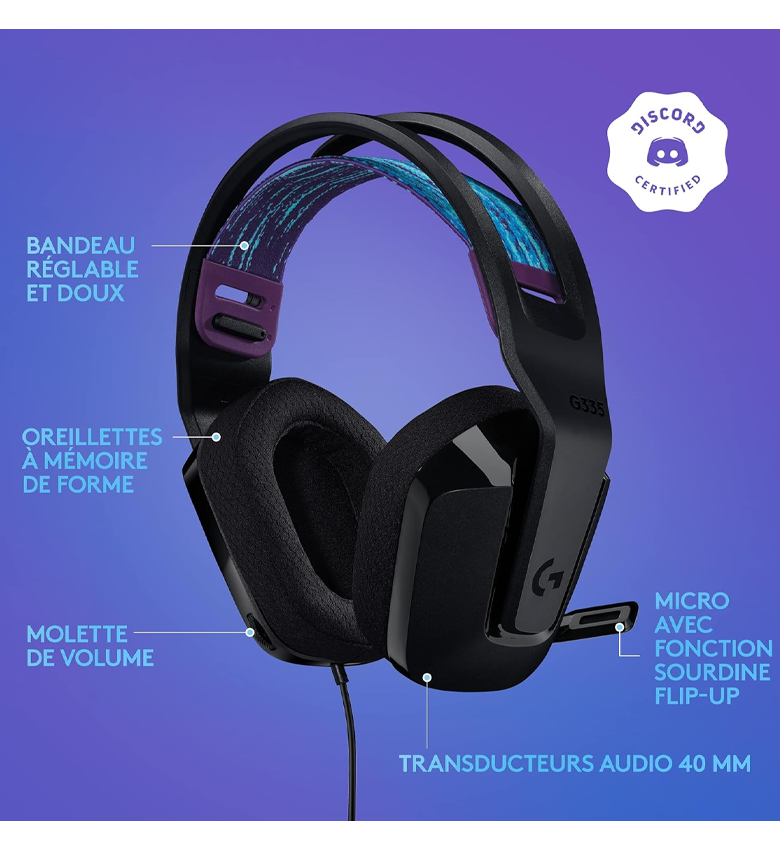 - Un son impressionnant : Grâce à ses transducteurs néodyme de 40 mm, le casque gaming G335 offre un son stéréo clair et net qui donne vie à votre jeu