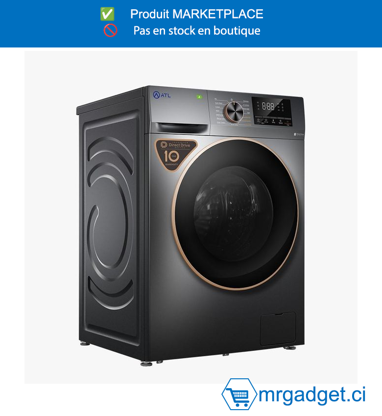 Machine à Laver/ Sécher ATL 10kg / 7kg - Silver - Moteur Inverter Automatique - Essorage 1400 tr/min - Haute Performance & Silencieuse - Modèle ATL107-N12312EHA07/S-INV