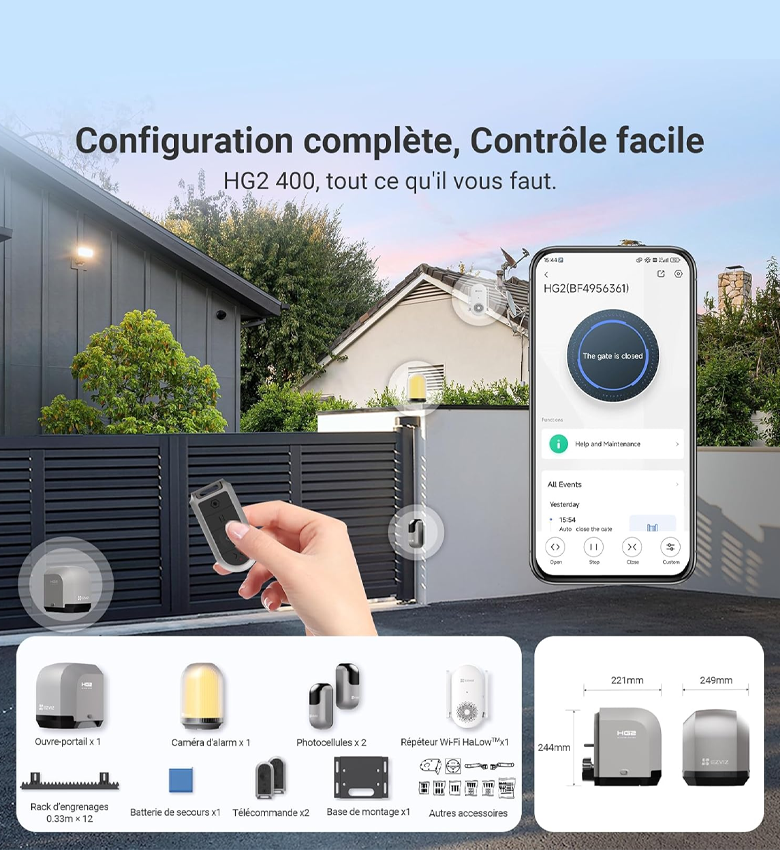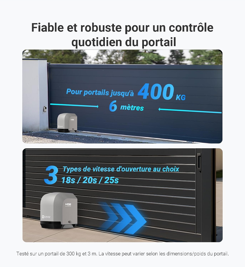Motorisation de Portail Coulissant Connectée EZVIZ HG2 400 - Jusqu'à 400kg - Contrôle via App EZVIZ - Ouverture/Fermeture à Distance - Détection d'Obstacles - Silencieux & Robuste - Installation Facile - Compatible Maison Connectée