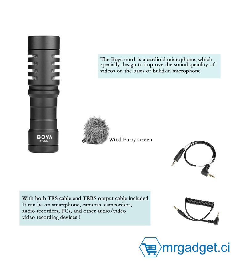 - BOYA Garantie : garantie du produit de 12 mois. Si vous avez des questions sur le microphone pour iPhone, veuillez nous contacter.