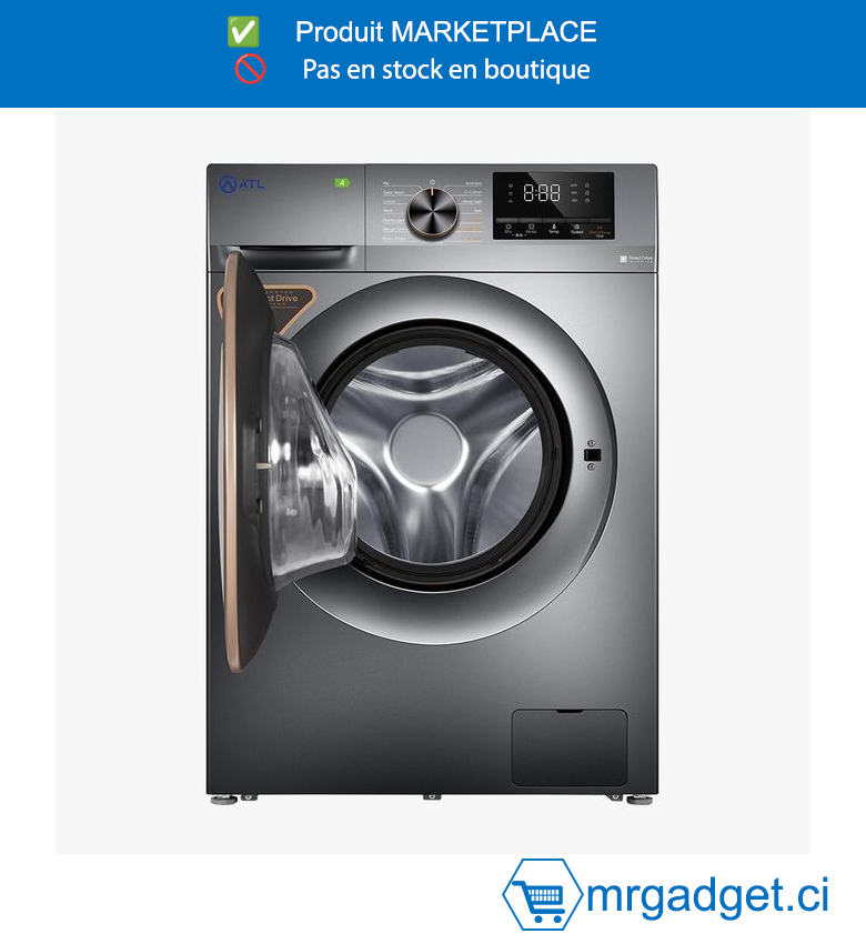 Machine à Laver/ Sécher ATL 10kg / 7kg - Silver - Moteur Inverter Automatique - Essorage 1400 tr/min - Haute Performance & Silencieuse - Modèle ATL107-N12312EHA07/S-INV