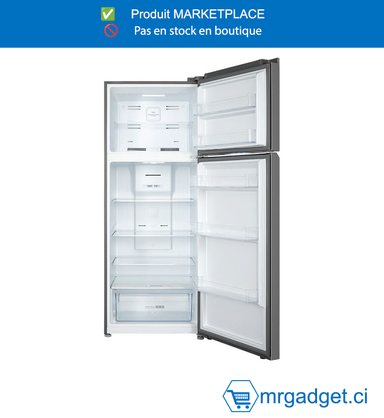 Réfrigérateur ATL 420L Total No Frost - 2 Portes avec Congélateur Haut - Finition Inox & Silver - Serrure de Sécurité Incluse - Grande Capacité & Design Élégant - Modèle ATL-2D490N