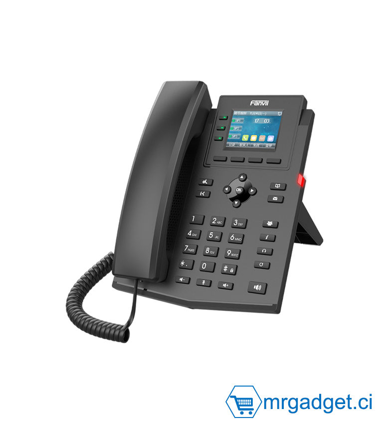 Le téléphone IP filaire Fanvil X303-2 est une version améliorée du modèle original, dotée d'une nouvelle alimentation et d'une connexion réseau à deux fils. Cette technologie permet la réutilisation intégrale du câblage existant tout en offrant une qualité audio haute définition, un écran couleur de 2,4 pouces, la prise en charge de 4 comptes SIP, l'alimentation et l'alimentation réseau à deux fils, la conférence multipoints et de nombreuses autres fonctionnalités. De plus, il est compatible avec les casques sans fil EHS externes et d'autres fonctions d'extension, ce qui le rend adapté à divers environnements d'entreprise et garantit une excellente expérience utilisateur.