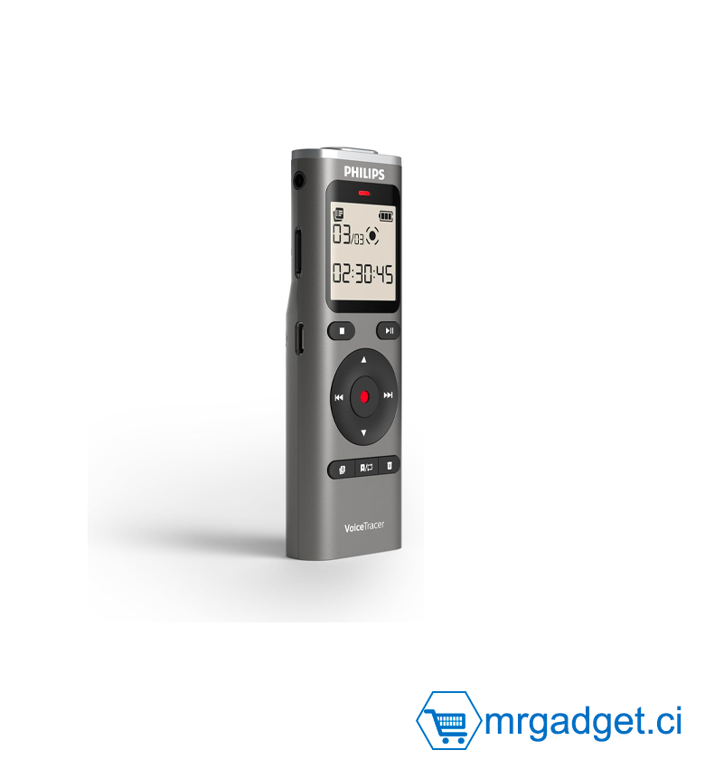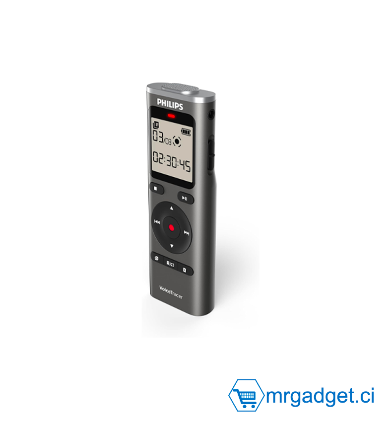 Enregistreur Audio Philips VoiceTracer DVT1170 - Dictaphone Numérique 8Go (Stockage 120 heures) - Connexion PC USB - Enregistrement vocal une touche - Idéal Études et Réunions