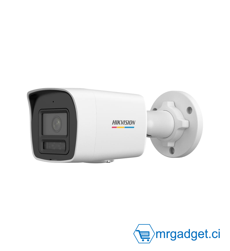 Hikvision DS-2CD1047G3-LIU 4MP (2K) - Caméra bullet IP - Smart Hybrid Light : Couleur la Nuit & Infrarouge - Objectif 2.8mm (104°) - Micro Intégré - IA Détection Humaine & Véhicule - Étanche IP67 - Vidéosurveillance Extérieure Haute Définition