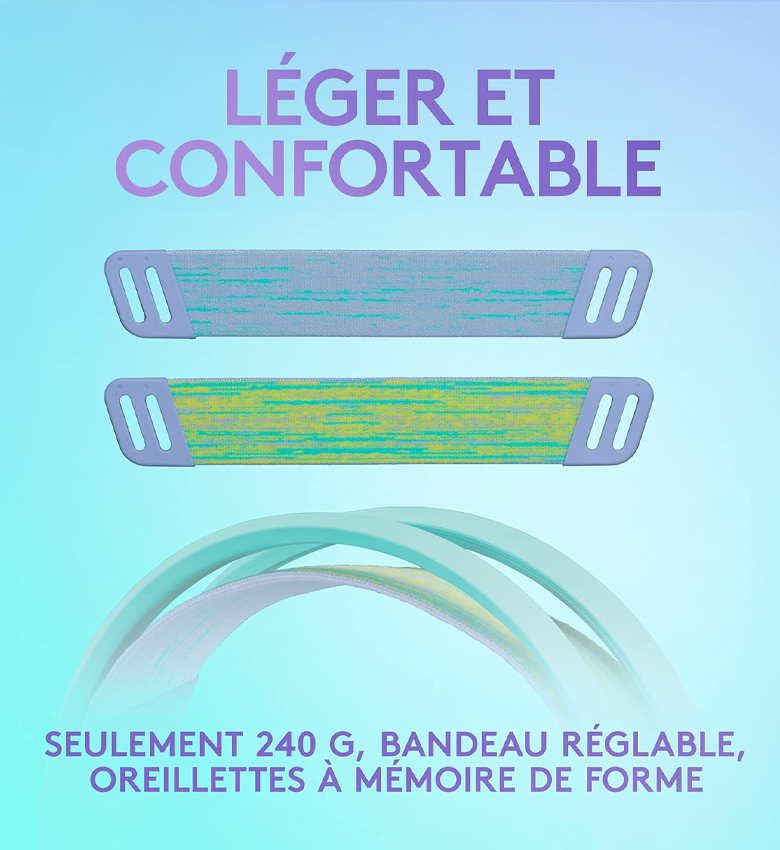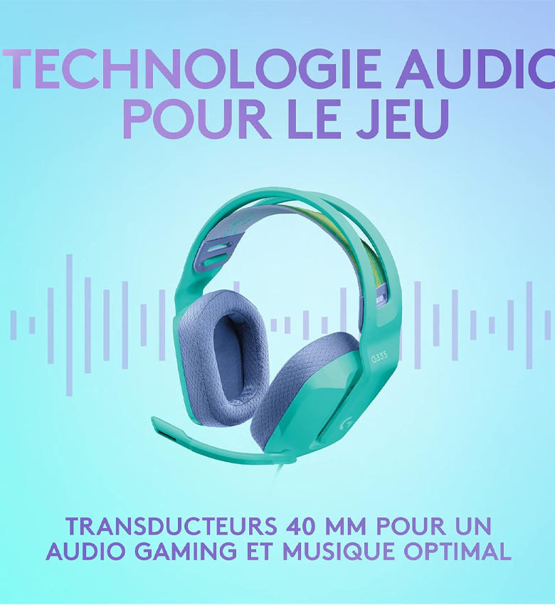 - Couleurs vives : Le casque de gaming G335 est disponible en de multiples couleurs, chacun avec son propre bandeau élastique réversible et lavable et ses coussinets en mousse à mémoire de forme