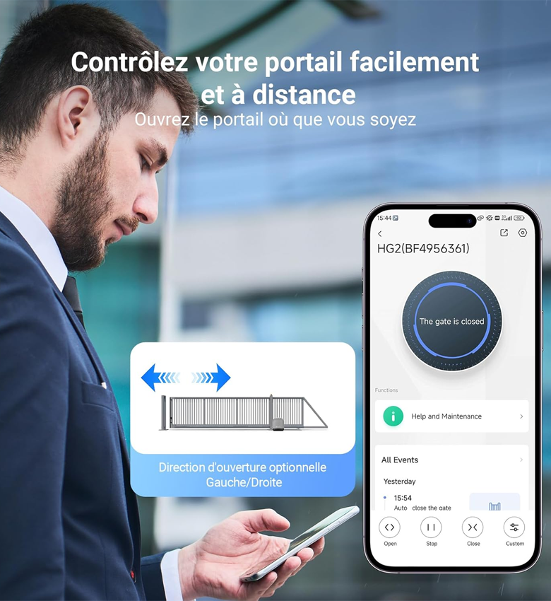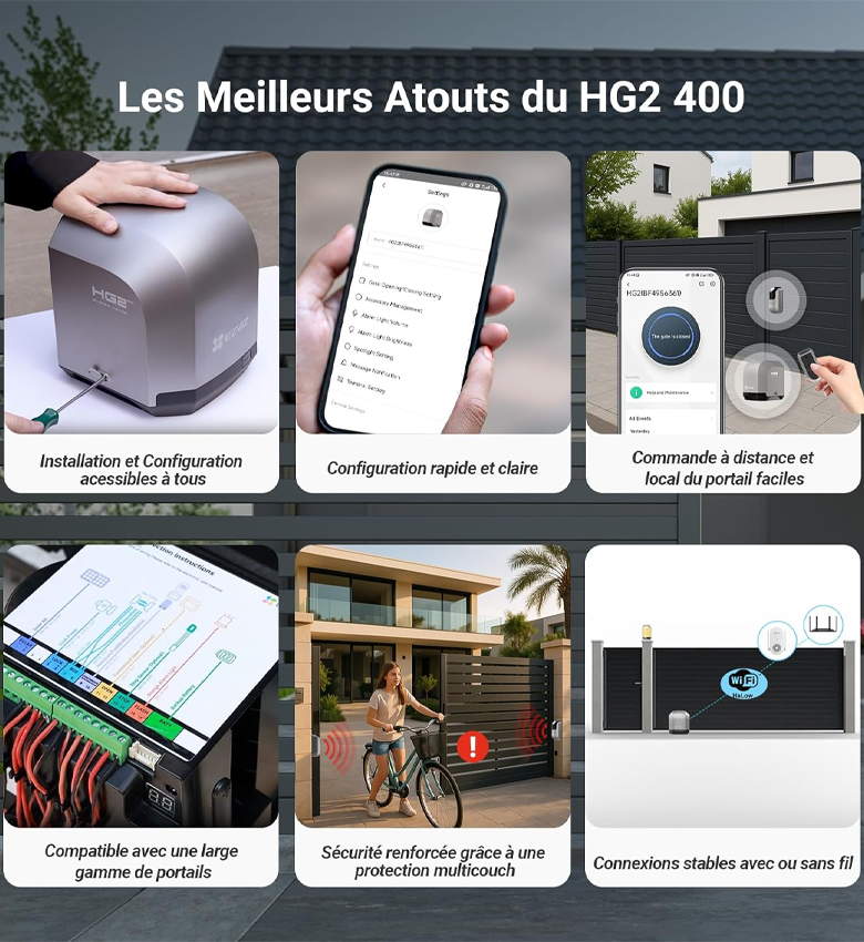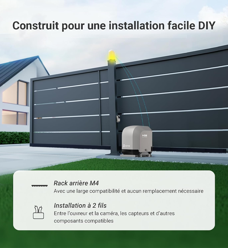 Motorisation de Portail Coulissant Connectée EZVIZ HG2 400 - Jusqu'à 400kg - Contrôle via App EZVIZ - Ouverture/Fermeture à Distance - Détection d'Obstacles - Silencieux & Robuste - Installation Facile - Compatible Maison Connectée