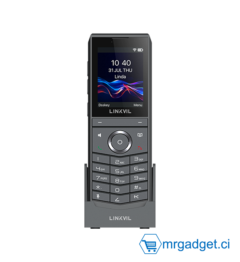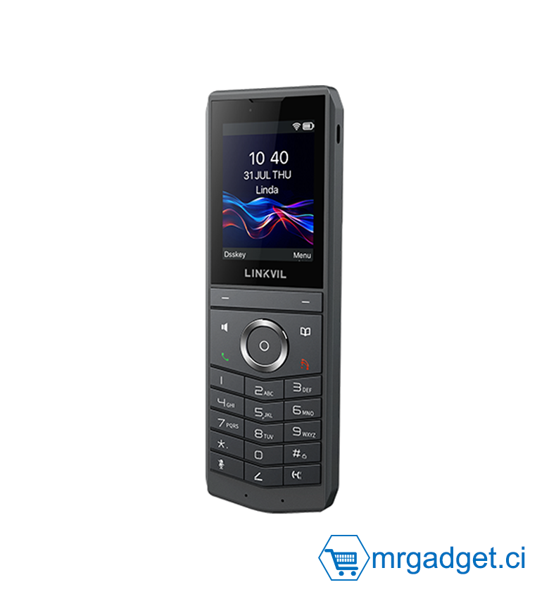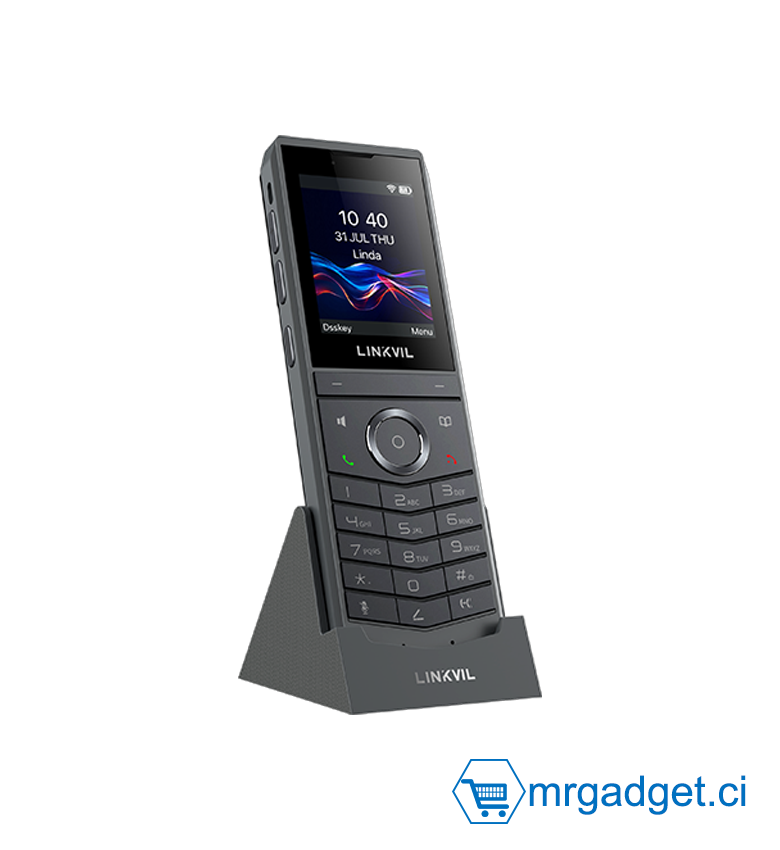 Le LINKVIL W620W est un téléphone IP Wi-Fi portable professionnel, spécialement conçu pour répondre aux besoins des bureaux mobiles modernes. Grâce au Bluetooth 5.0 et au Wi-Fi 6 bi-bande 2,4 GHz/5 GHz intégrés, associés à une technologie d'itinérance fluide et avancée, il offre des communications stables et performantes, même dans les environnements sans fil dynamiques. Le W620W prend en charge la conférence vocale à 6 participants et est résistant aux chutes de 1,8 mètre. De plus, il est équipé d'un haut-parleur haute définition et d'un système à double microphone haute sensibilité avec algorithmes de réduction du bruit, garantissant des appels d'une clarté exceptionnelle, même dans les environnements bruyants. Alimenté par une batterie haute capacité intégrée de 3 000 mAh, il offre jusqu'à 13 heures d'autonomie en conversation et 240 heures en veille, améliorant considérablement la continuité et la flexibilité du travail. Idéal pour divers environnements de bureau mobiles tels que les immeubles de bureaux, les hôtels, les centres commerciaux et les patrouilles de sécurité, le W620W est le choix idéal pour les entreprises cherchant à améliorer l'efficacité de leurs communications mobiles.