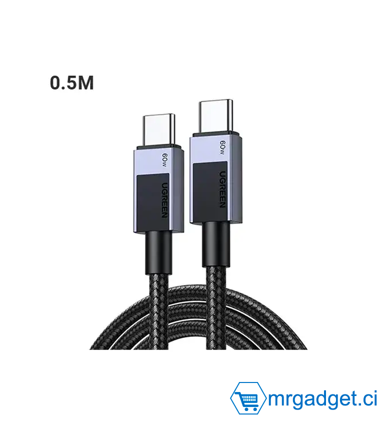 UGREEN L524 55764 - Cable USB-C vers USB-C - 50cm (0.5m) - 60W - USB-C à USB-C PD Câble tressé à charge rapide
