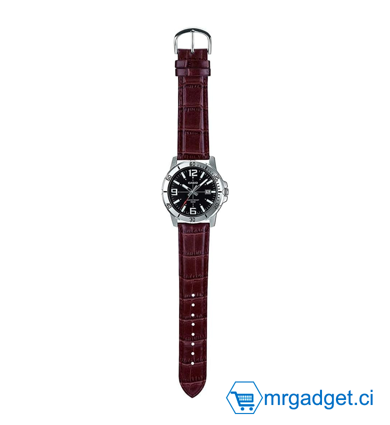 CASIO #CH23 MTP-VD01L-1BVUDF Montre Homme en Acier Inoxydable Cadran Noir Affichage Analogique - Bracelet en Cuir marron – Affichage analogique – Résistant à l’eau