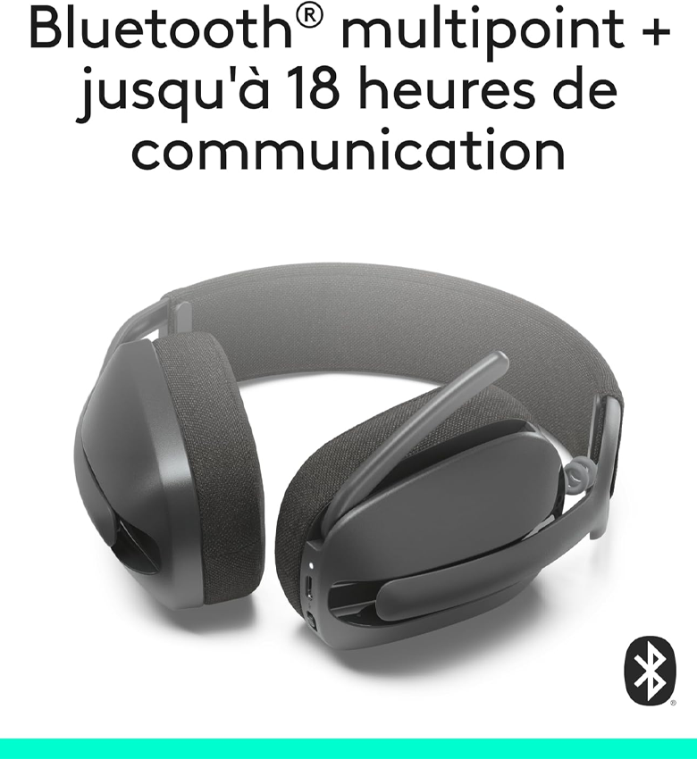 Casque Bluetooth Logitech Zone Vibe 100 - Micro à Réduction de Bruit Escamotable - Autonomie 20h - Ultra Léger (185g) & Confortable - Compatible Zoom, Google Meet, Teams - Son Immersif pour Télétravail et Musique - Éco-conçu - Noir