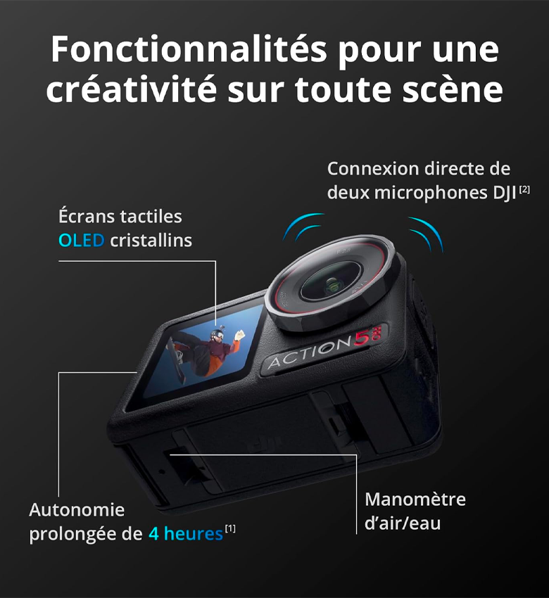 - Utilisation durable en toutes conditions – Profitez de la satisfaction d’une autonomie allant jusqu’à 4 heures[1]; Solution idéale pour tous les scénarios, assurant des performances continues et un enregistrement ininterrompu