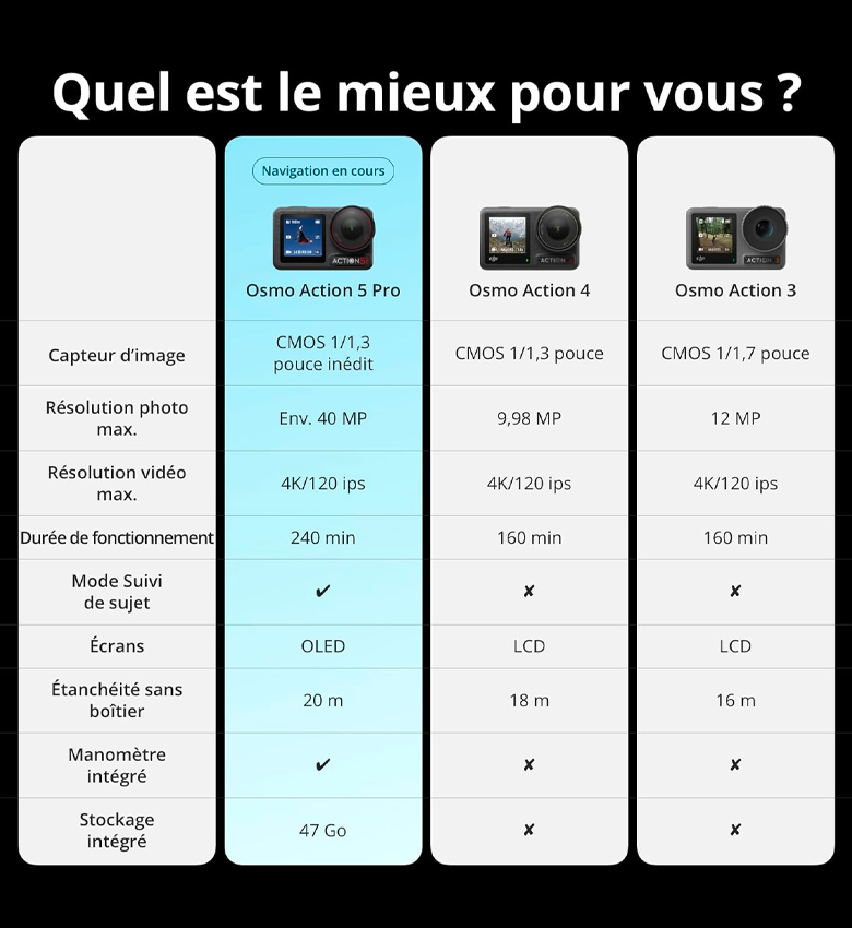 - Bundle Aventure avec trois batteries Extrême Plus et davantage – Ce bundle comprend des accessoires pour une utilisation polyvalente. Idéal pour les créateurs de contenu en quête d’aventure et ayant besoin de flexibilité et de fiabilité