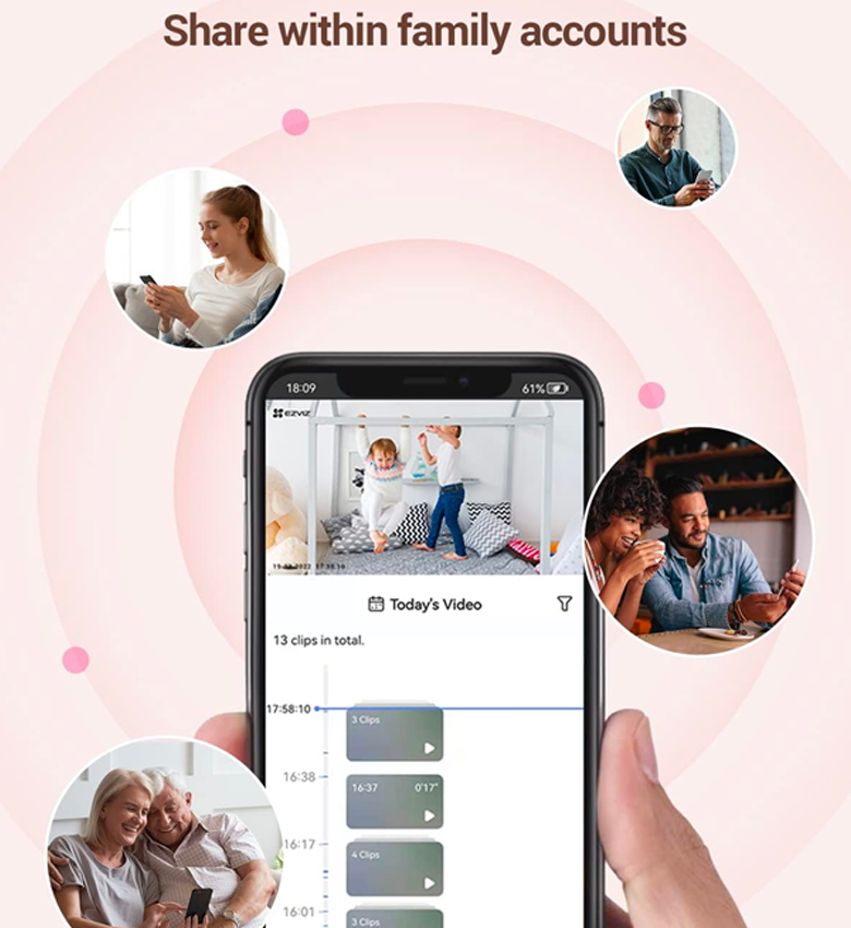 EZVIZ BM1 Babyphone Camera sur Batterie 2000mAh, Camera Bebe avec Détection de Pleurs/Movement de Bébé, Lecture Automatique de Musique Apaisante, Vision Nocturne sans Lumière Rouge Visible, Rose