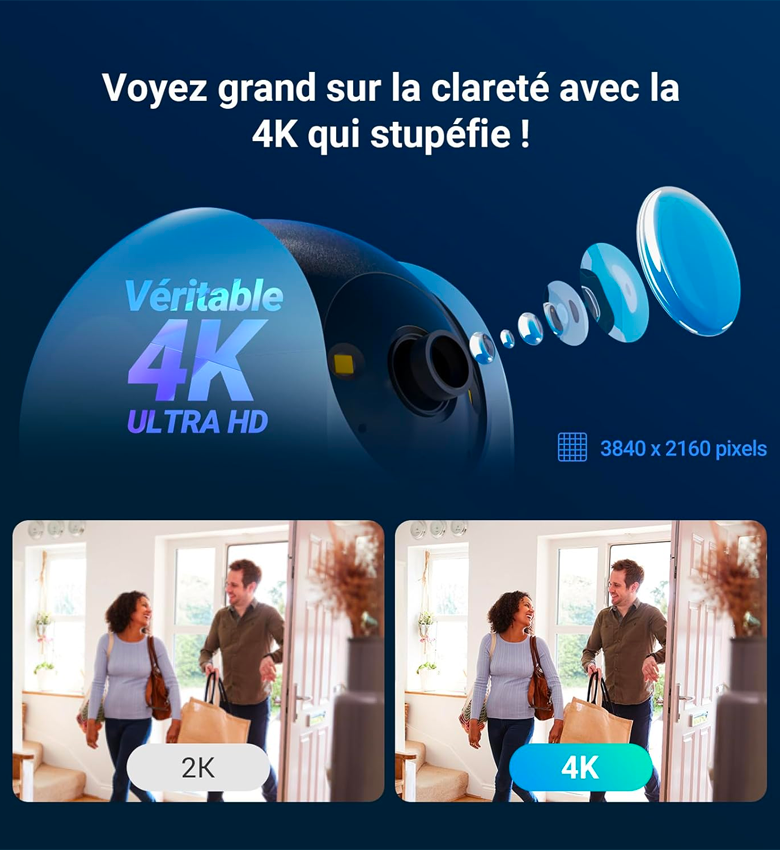 - 【Véritable WDR pour Ajuster l'éclairage】Le véritable WDR permet à la caméra d'équilibrer les zones claires et sombres dans le même cadre, afin que rien ne soit perdu dans l'ombre ou effacé par la lumière du soleil.