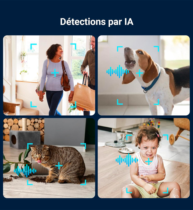 - 【Détection de Forme Humaine/Animal/Bruit Fort et Suivi Automatique du Zoom】De nombreuses options de détection vous permettent de rester informé. Détecte les mouvements humains, les animaux actifs et les bruits soudains, notamment la détection de forme humaine, la détection d'animaux, la détection de bruits forts et la détection de mouvement. La fonction de suivi intelligent sera mise à jour pour suivre les mouvements des formes humaines et filtrer le suivi des autres objets.