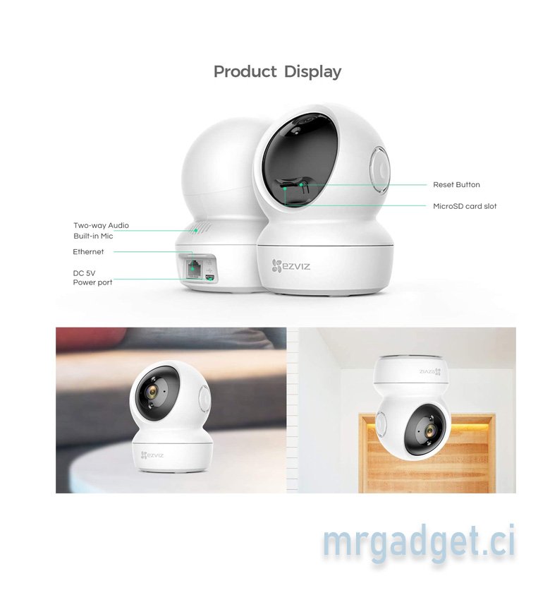 - 【DÉTECTION DE MOVEMENT et SUIVI INTELLIGENT & STOCKAGE FLEXIBLE】- Lors de la détection de mouvement, la camera bébé C6N capture et suit automatiquement les mouvements, tout en fournissant des notifications et en effectuant des enregistrements vidéo en temps réel. Vous pouvez sauvegarder les enregistrements sur la plate-forme cloud EZVIZ. Une carte Micro SD jusqu'à 256Go supporté aussi (non inclus).