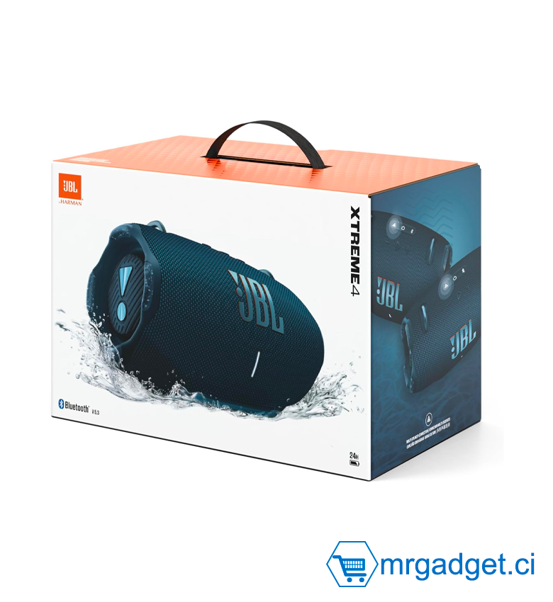 - Contenu de la boîte : 1 x Enceinte JBL Xtreme 4, en bleu, 1 x Adaptateur PD (le type de prise varie selon la région), 1 x Guide de démarrage rapide, 1 x Consignes de sécurité