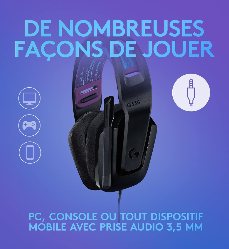 - Un son impressionnant : Grâce à ses transducteurs néodyme de 40 mm, le casque gaming G335 offre un son stéréo clair et net qui donne vie à votre jeu