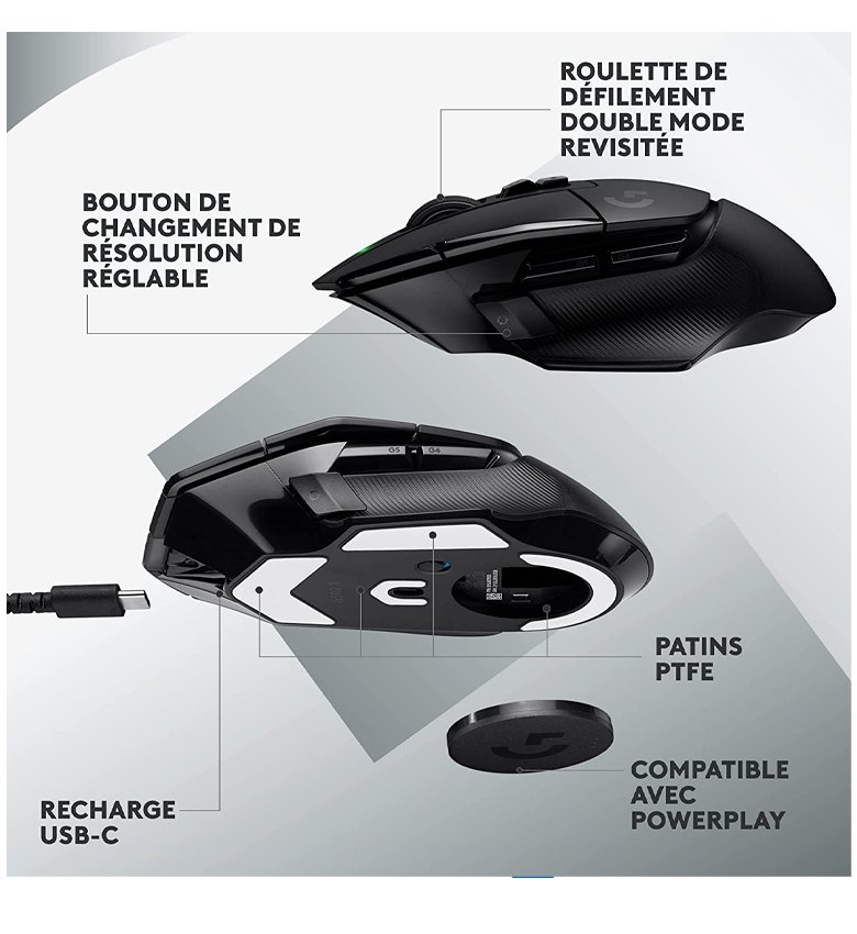 - Compatible POWERPLAY : G502 X PLUS souris gaming PC sans fil reste chargée, au repos et lors du jeu, avec notre solution de chargement sans fil unique (vendu séparément)