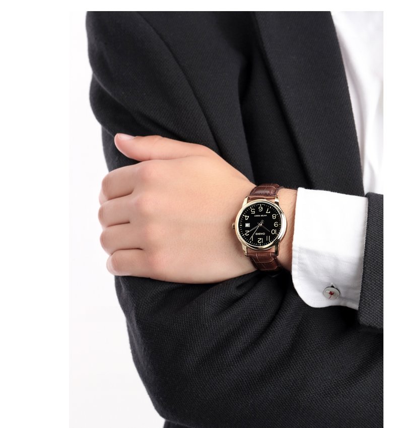 Montre à quartz Casio pour homme, affichage analogique et bracelet en cuir Mtp-V002Gl-1Budf