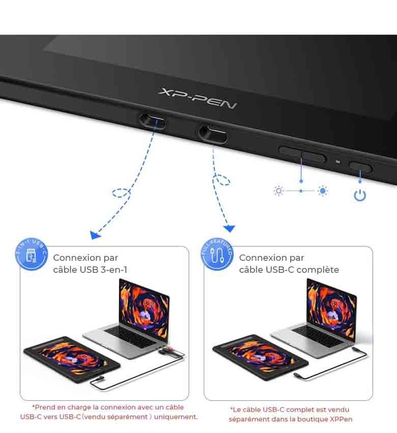 - L'écran antireflet dispose d'une vaste gamme de couleurs de 127 % sRGB permet une présentation complète des couleurs et une expression des détails délicats. Disposant de 10 touches de raccourcis personnalisables et deux ports USB-C flexibles, qui peuvent simplifier votre travail et renforcer votre productivité.