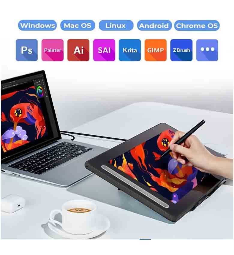 - Excellente compatibilité - fonctionnement fluide avec divers systèmes et logiciels. L' écran graphique à stylet Artist 16 (2nd Gen) est compatible avec Windows, Mac OS X, Chrome OS, Linux et Android. Il est également compatible avec divers logiciels graphiques courants, comme Adobe Photoshop, Illustrator, SAI, CDR, GIMP, Krita et MediBang ect.