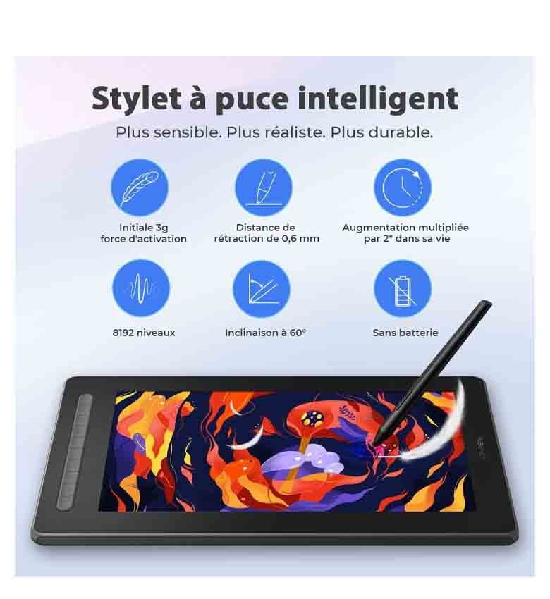 - Votre créativité n'a plus de limite en prenant le contrôle avec notre dernier stylet à puce intelligente X3. Grâce à la technologie de puce intelligente, le stylet X3 convertit avec précision les signaux électromagnétiques en données numériques, il offrir une sensibilité record avec stabilité et précision, qui vous donnent la sensation d’obtenir le même résultat naturel que des outils de dessin classiques. XPPen stylet X3 est un stylet sans pile ni batterie pour une performance parfaite.