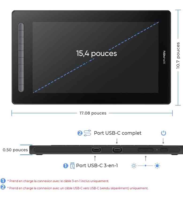 - XPPen nouvelle génération de tablette graphique avec écran - Artist 16 (2nd Gen) - synthèse parfaite de la portabilité et de la taille. L'écran haute définition IPS 1920x1080 en 15.4 pouces, angle de vue visible à 178°, avec technologie lamination intégrale, un écran avec la moindre parrallaxe pour l'utilisation professionnelle des artistes et des illustrateurs.