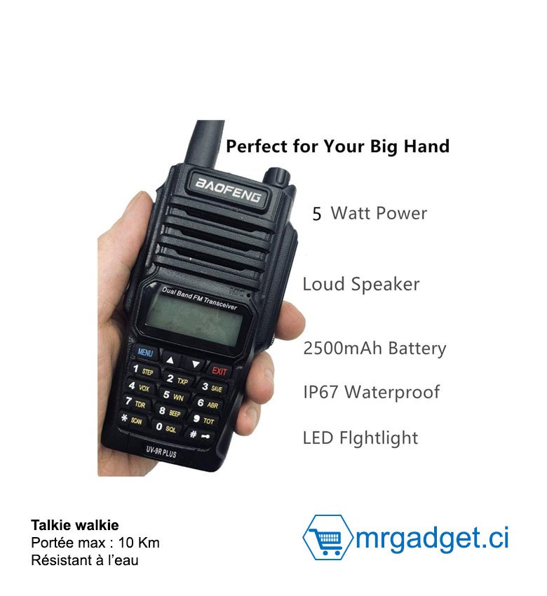 BaoFeng UV-9R Walkie Talkie Radio BF-UV9R IP67 Waterproof Dual Band Radio 8W UV 9R Paire - Portée : 10Km à vol d'oiseau
