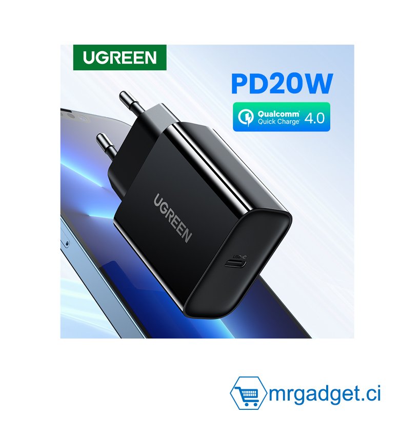 Boitier charge rapide 20W - Chargeur PD20W USB C Chargeur mural Charge rapide Type-C Prise de chargeur Adaptateur de voyage universel Prise USB-C Compatible pour iPhone 14 Pro Max/14 Pro/14 Plus/14/13/12/11, Samsung, etc. UGREEN CD137 10191 - #10061