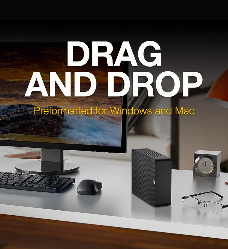 Disque Dur Externe Desktop Seagate Expansion 12 To - HDD 3.5" USB 3.0 Haute Vitesse - Compatible PC, Mac - Solution de Sauvegarde Instantanée - Noir