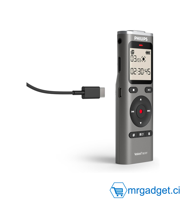 Enregistreur Audio Philips VoiceTracer DVT1170 - Dictaphone Numérique 8Go (Stockage 120 heures) - Connexion PC USB - Enregistrement vocal une touche - Idéal Études et Réunions