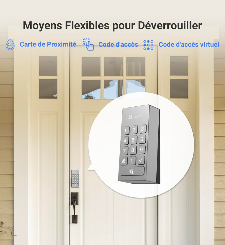 EZVIZ DL01 PRO Kit Smart Lock (DL01 PRO, DL01CP Keypad, A3-200 Gateway) avec Clavier Multifonctionnel et A3 Passerelle Domestique, Serrure Connectée fonction Bluetooth accès à distance, Serrure Smart Lock accès sans Clé pour Maison Connectée