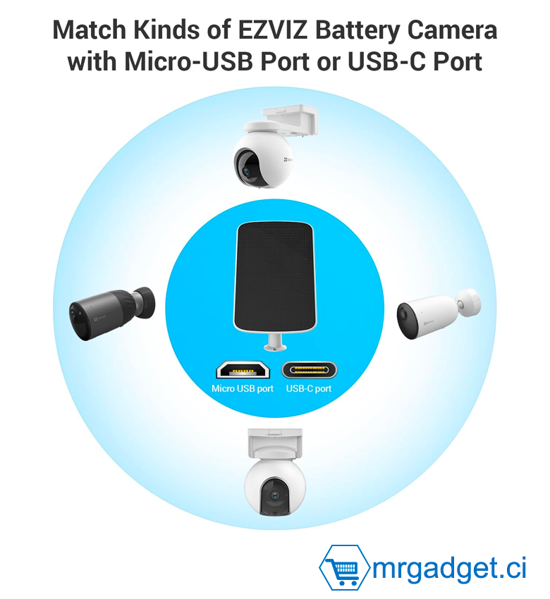 Conçu pour les caméras à batterie EZVIZ avec ports de charge de Type C