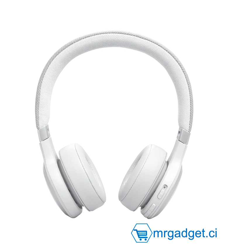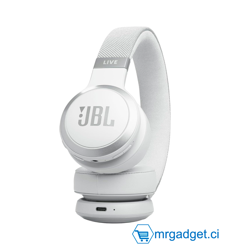 JBL Live 670NC Casque supra-auriculaire, Bluetooth 5.3, connexion multi-source, Réduction de Bruit Adaptative et Smart Ambient, jusqu'à 65 heures d'autonomie, blanc