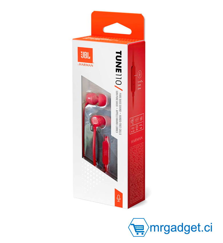 - Livraison : 1 x JBL Tune110 / Ecouteurs intra-auriculaires sans fil / Microphone intégré et fil plat sans noeuds / Câble Jack 3,5 mm / Couleur : Noir