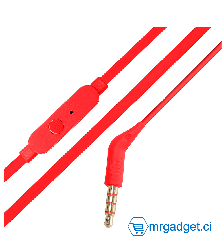 JBL TUNE 110 – Ecouteurs intra-auriculaires filaires – Son Pure Bass de JBL et bouton de contrôle – Connectivité : câble Jack 3,5 mm – Couleur : Rouge