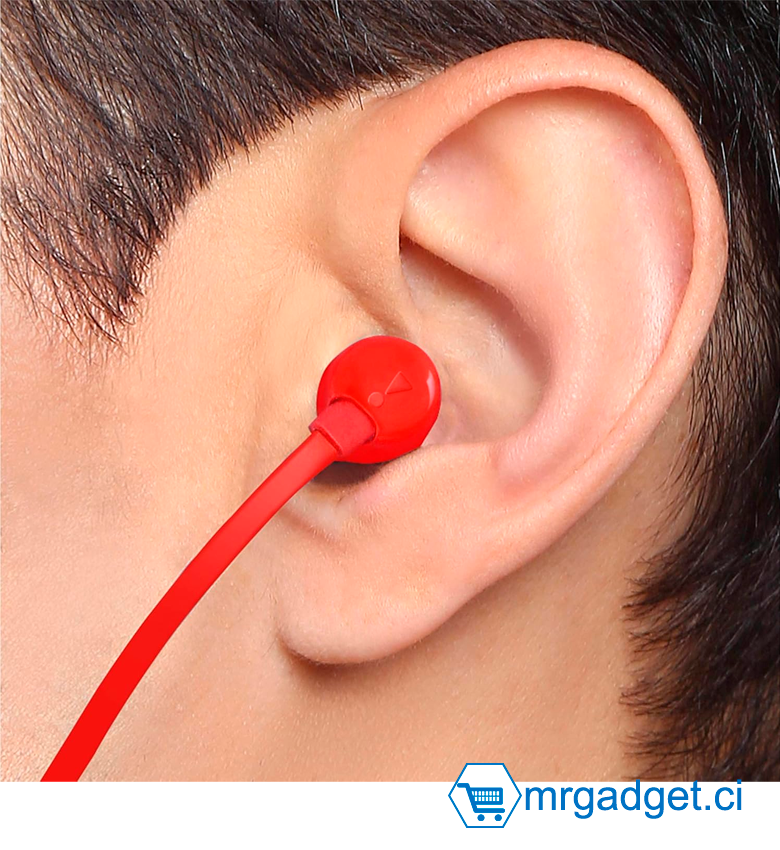 intra-auriculaires s'adaptent naturellement et confortablement à vos oreilles, pour une écoute agréable et sans gêne. Le fil plat ne s'emmêle pas :