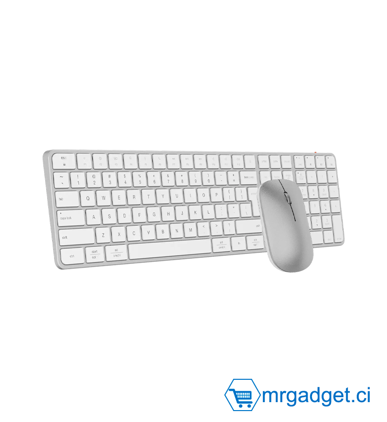 Meetion C230MW Combo Clavier et souris ultra fin - Sans fil double connectivité (Dongle USB 2.4 Ghz et Bluetooth) - Blanc - AZERTY