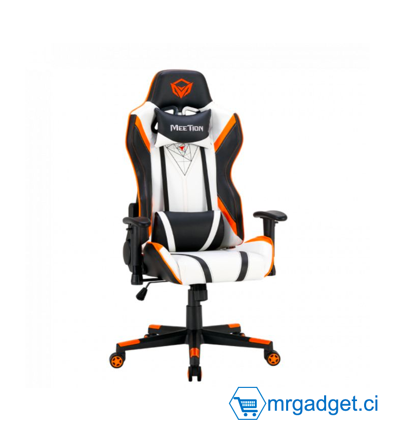Meetion Chaise Gamer Pro CHR15 Blanc 180° Confort Absolu pour Bureau et Maison - Siège de bureau - Fauteuil Gamer - Noir+Blanc+orange