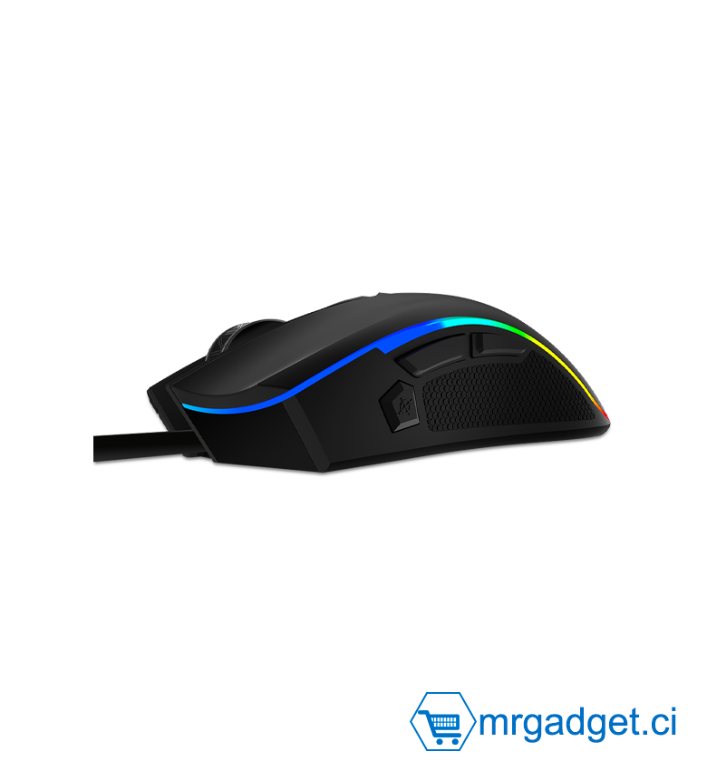 Look cool et conçu pour les jeux. La conception simplifiée améliore l'adhérence. Capteur optique haute résolution 8000 dpi, la résolution peut être modifiée par le logiciel du pilote. Le rétroéclairage et les touches supplémentaires vous permettent de profiter de la commodité du contrôle dans n'importe quel jeu. Les capteurs de jeu fonctionnent sur n'importe quelle surface. Le bouton de changement de DPI vous permet de régler la vitesse de déplacement de la souris et un indicateur de couleur vous rappelle les paramètres actuellement utilisés. Le bouton de tir unique vous permet de battre facilement vos adversaires, deux boutons latéraux vous donnent un accès rapide et facile aux extras du jeu, et un revêtement doux au toucher confortable vous permet de vous divertir pendant de longues périodes.